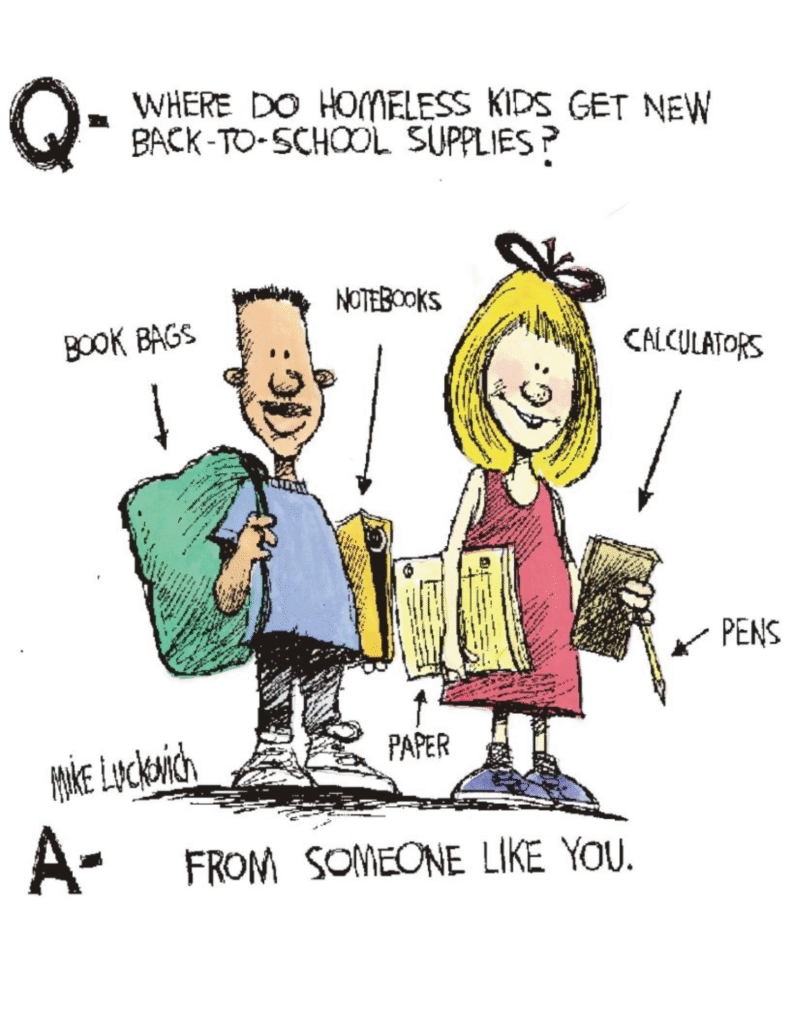 Our goal is to ensure homeless children living in group homes and shelters throughout Metro Atlanta have the supplies they need for school. Our Back 2 School Campaign not only provides homeless children with these critical supplies, but also offers them something even more valuable: a chance to succeed.